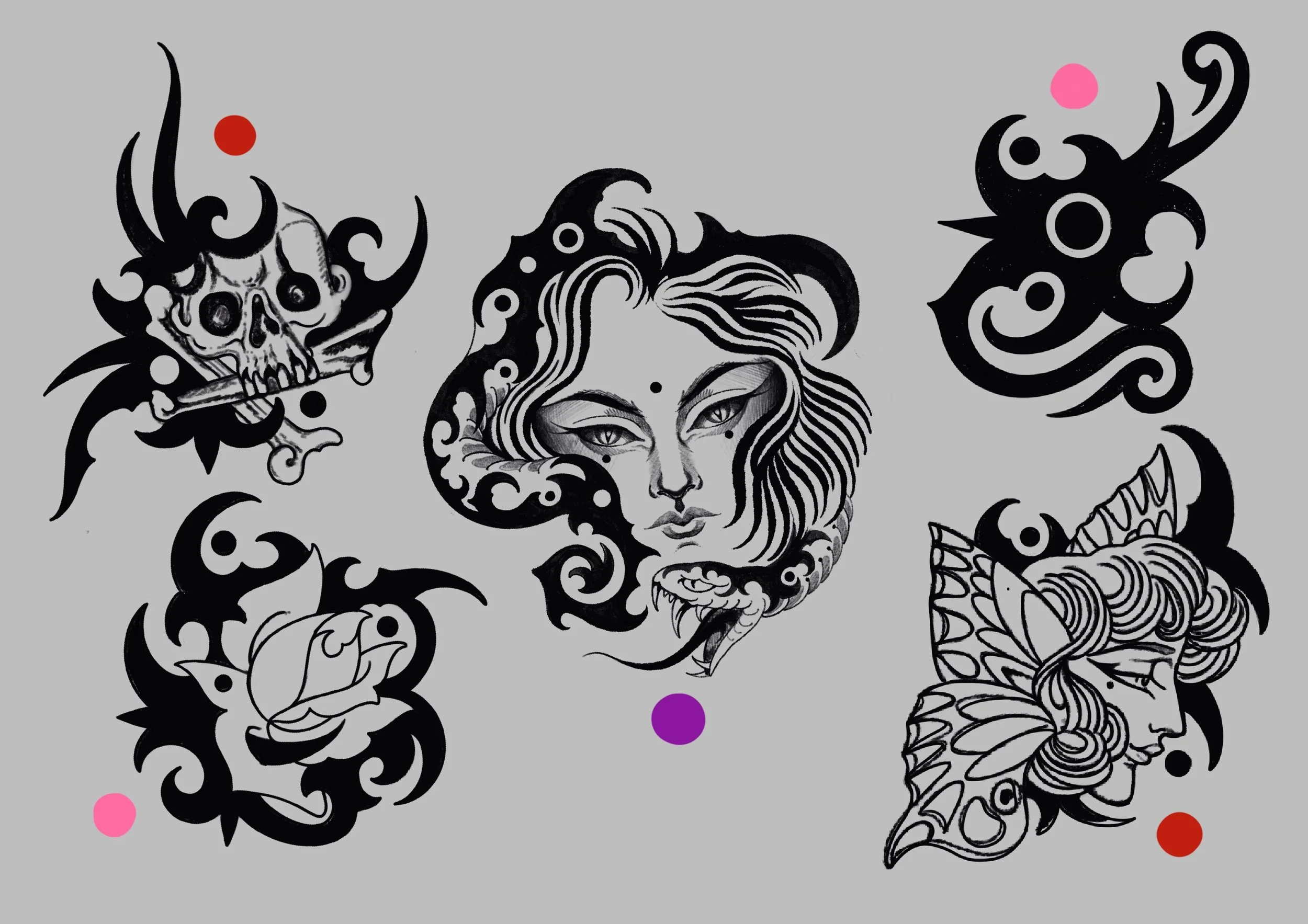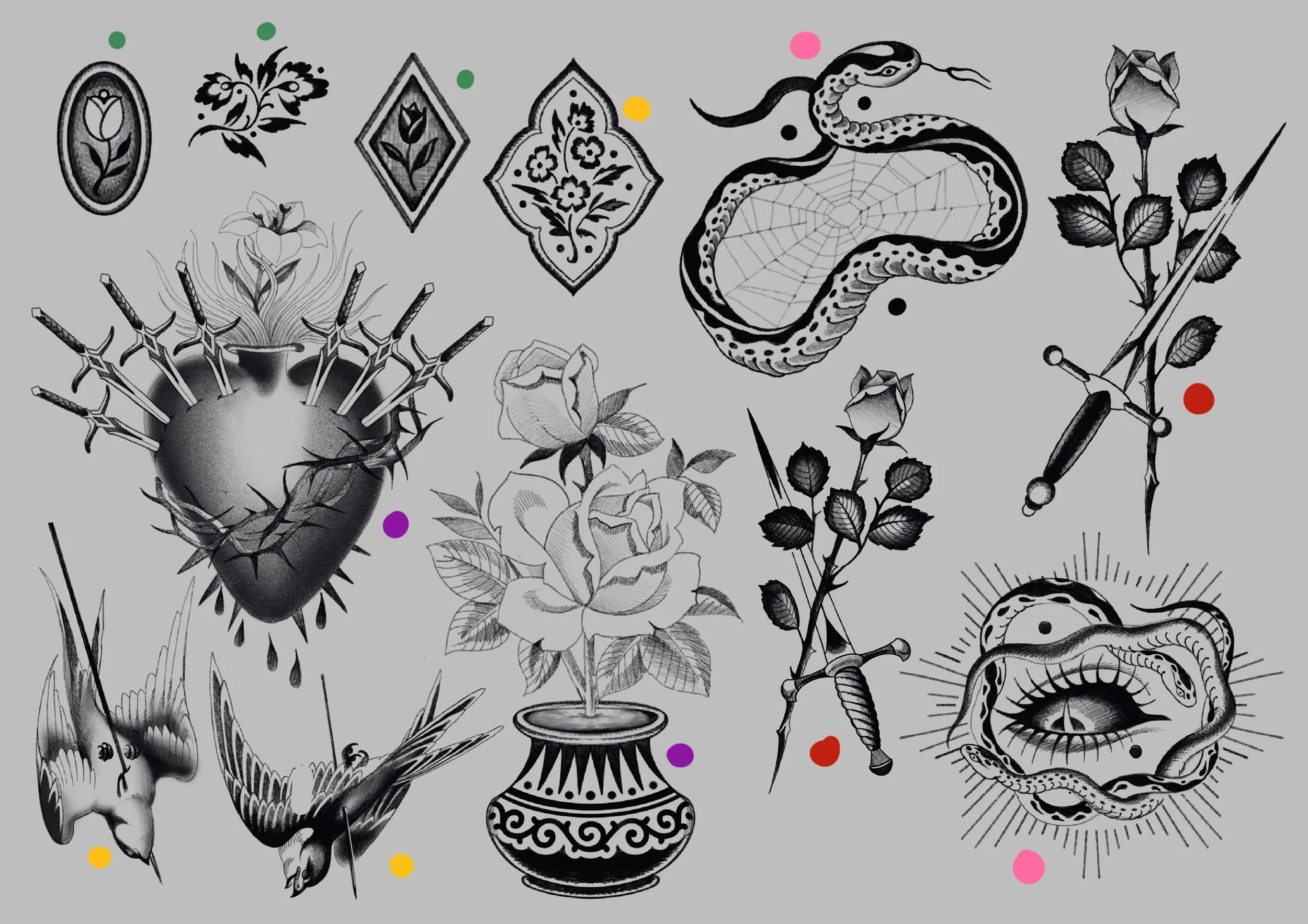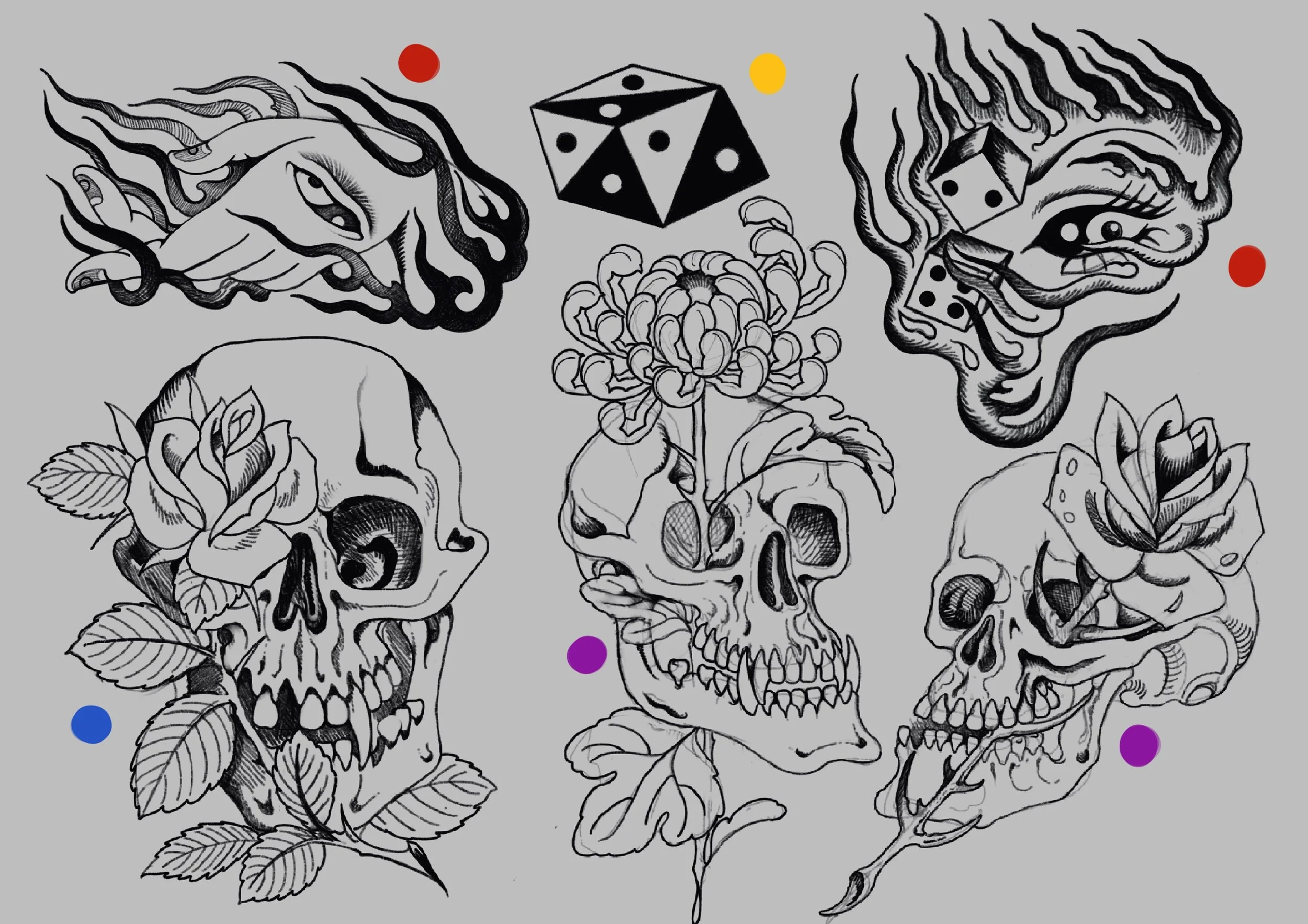 TATTOO FLASH are sheets of drawings that are available to tattoo more then once (and that is why pricing is different then custom tattoo designs)