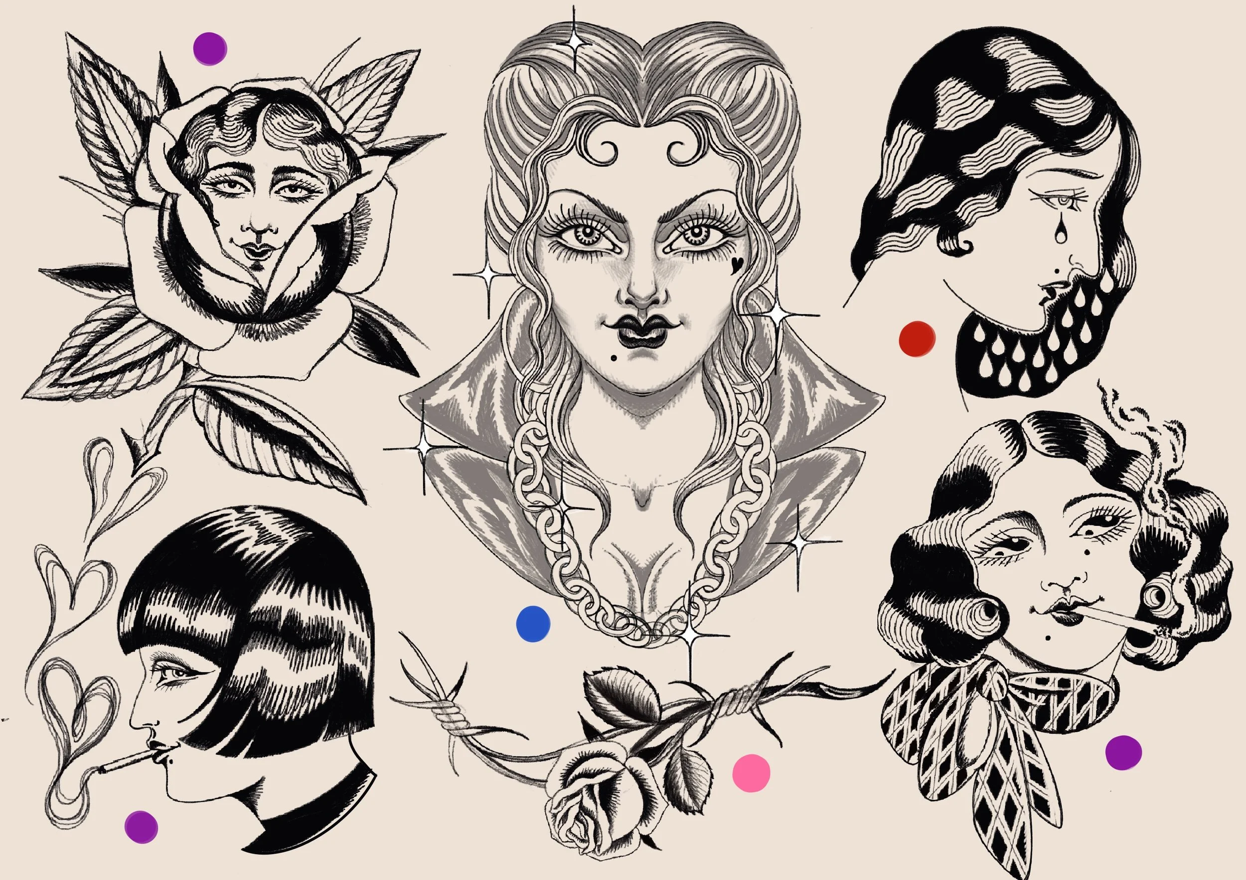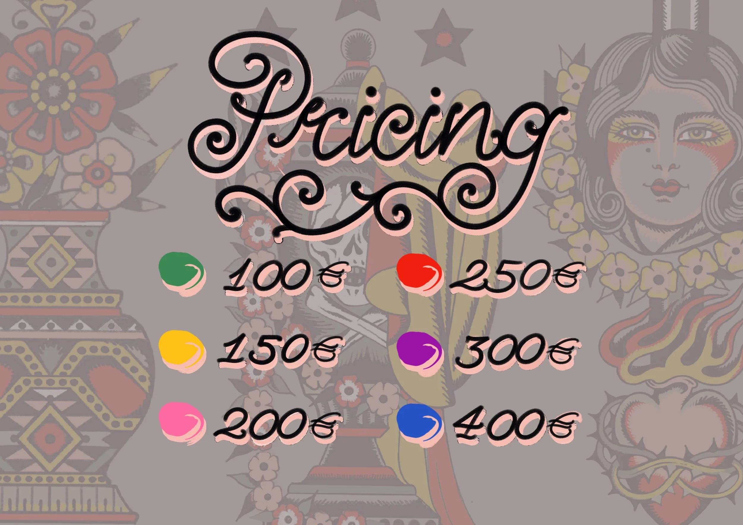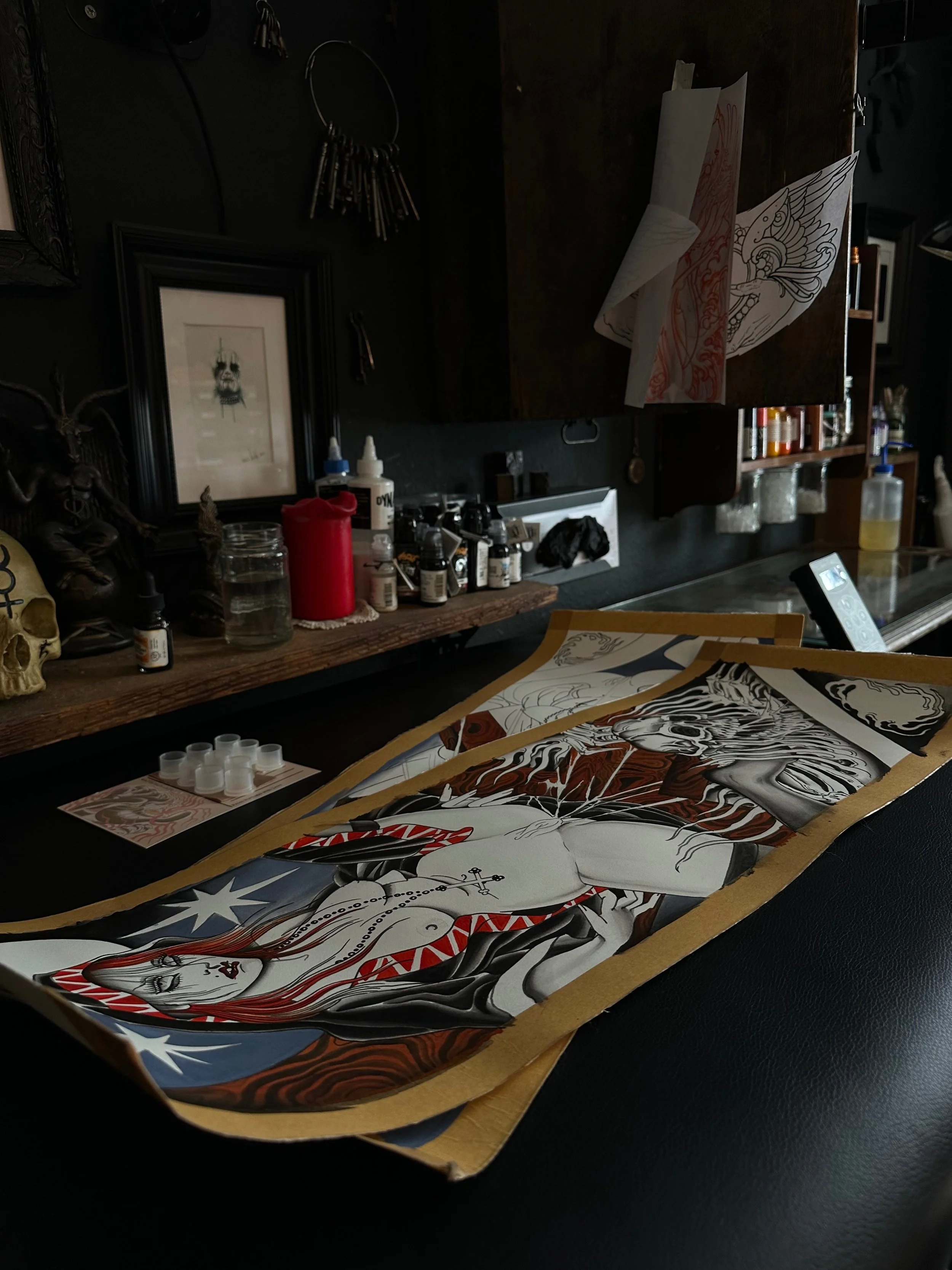 TATTOO FLASH are sheets of drawings that are available to tattoo more then once (and that is why pricing is different then custom tattoo designs)