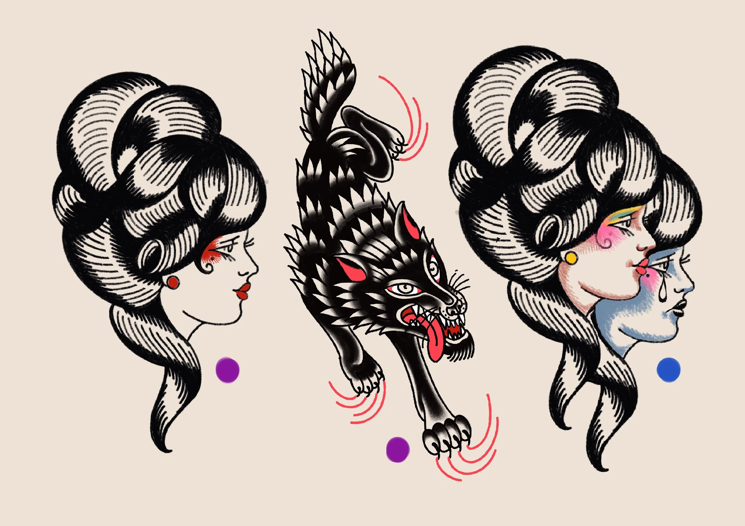My tattoo creations can be inspired by existing tattoo flash created by OLD TRADITIONAL and then I give them a spin of my own style.